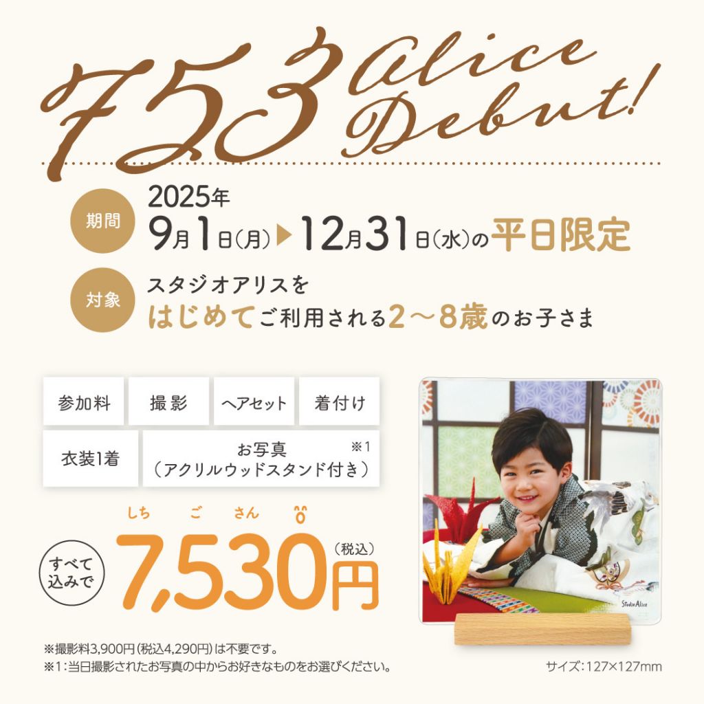 スタジオアリスをはじめて利用される2歳~8歳までのお子様対象で